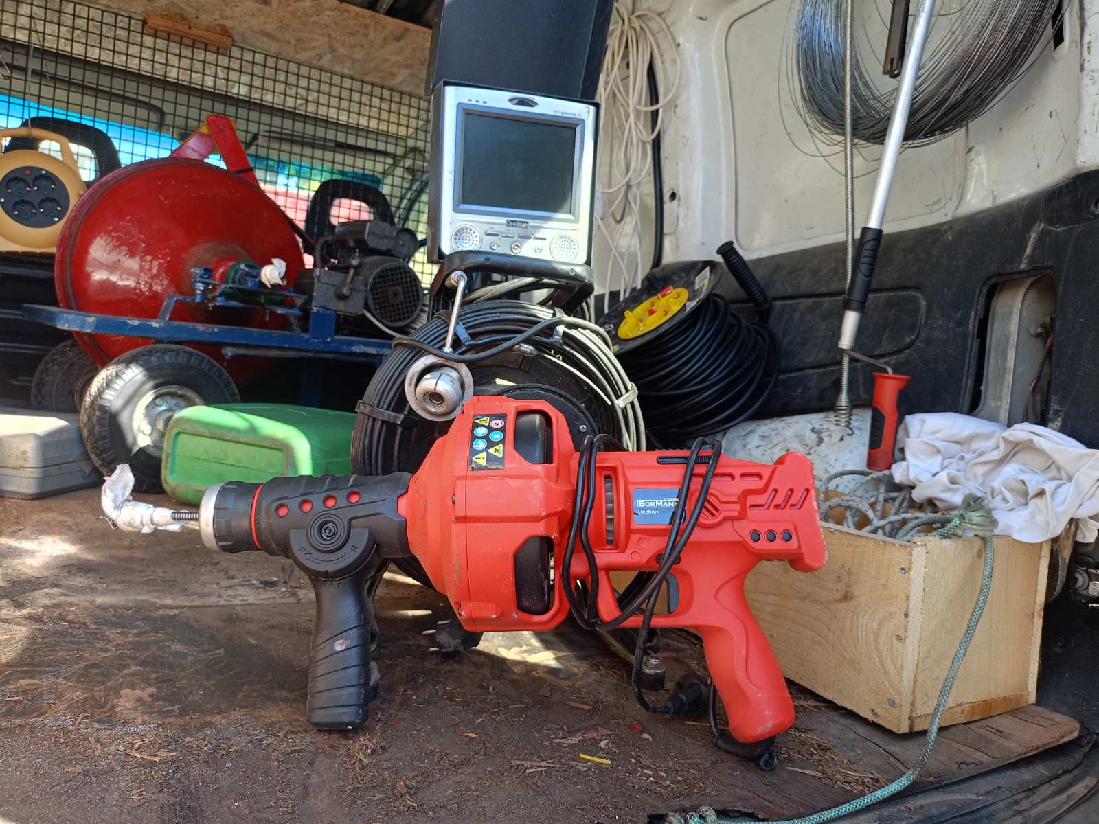 Διαθέτουμε σύγχρονο εξοπλισμό, που περιλαμβάνει 3 αποφρακτικά φορτηγά πιέσεως νερού, 9 ηλεκτροκίνητα αποφρακτικά μηχανήματα και 1 κάμερα ελέγχου αποχέτευσης μήκους έως 80 μέτρα, εξασφαλίζοντας την αποτελεσματική διαχείριση και των πιο δύσκολων αποφρακτικών εργασιών.